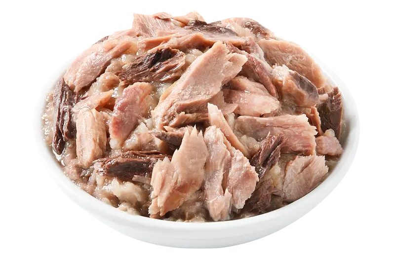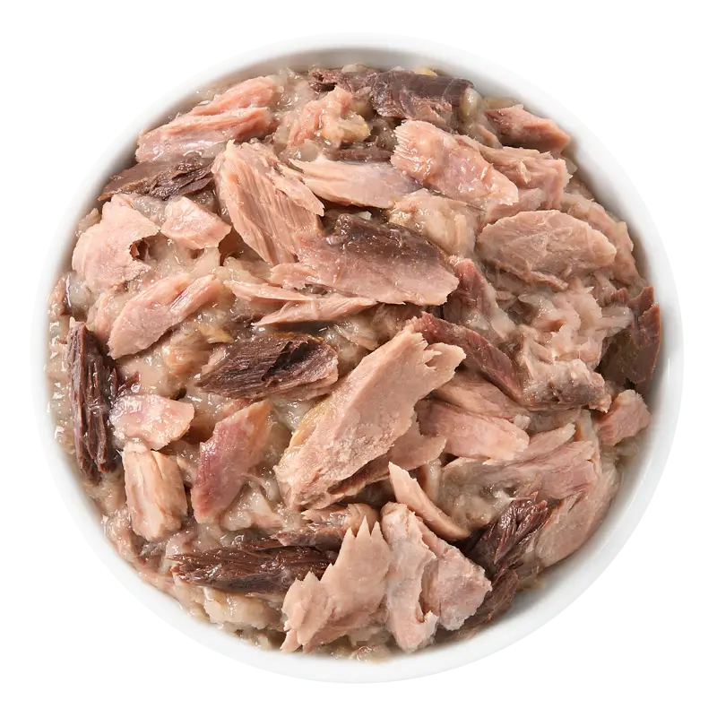 Tuna whole loin (48%), sunflower oil, tapioca starch, minerals, tomato paste.