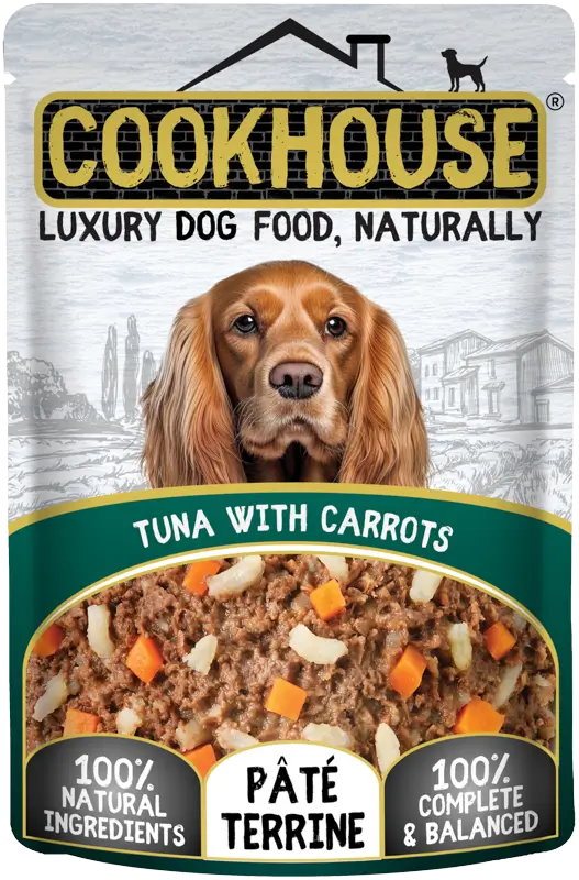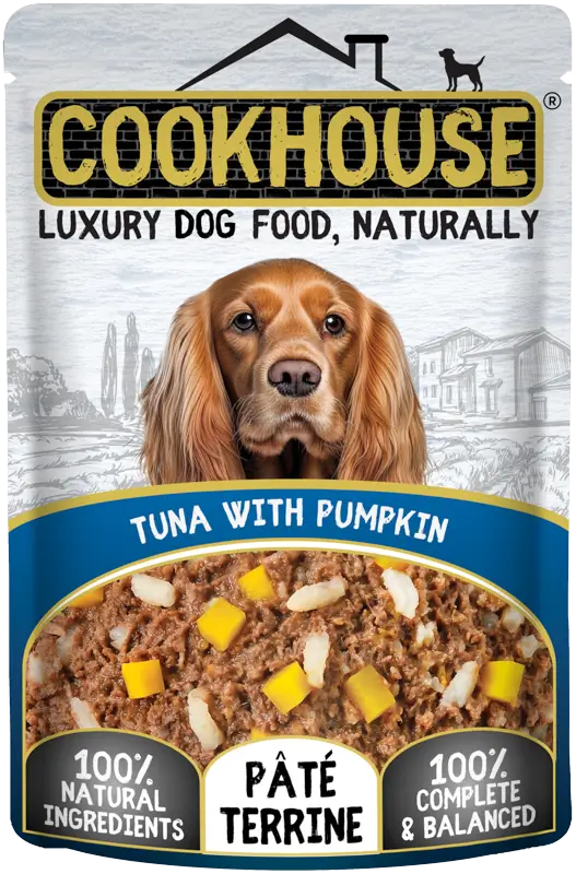COOKHOUSE Tuna with Pumpkin / Tuna with Carrots Pate Terrine Multipack is made using the very finest, freshly-prepared 100% natural ingredients, including lots of juicy tuna together with fresh field-grown carrots & pumpkin. Our light and silky pate terrine is then mixed together by hand before being gently steam-cooked to just the right consistency for your dog to enjoy. So as well as tasting fantastic to your dog, COOKHOUSE recipes also look good enough for you to eat! Each recipe is also 100% complete & balanced, meaning it supports healthy digestion & contains the perfect combination of vitamins & minerals that your dog needs to enjoy a happy, healthy diet. Suitable for all breeds of adult dogs, COOKHOUSE is tasty and healthy in equal measure. It’s Luxury Dog Food, Naturally.
